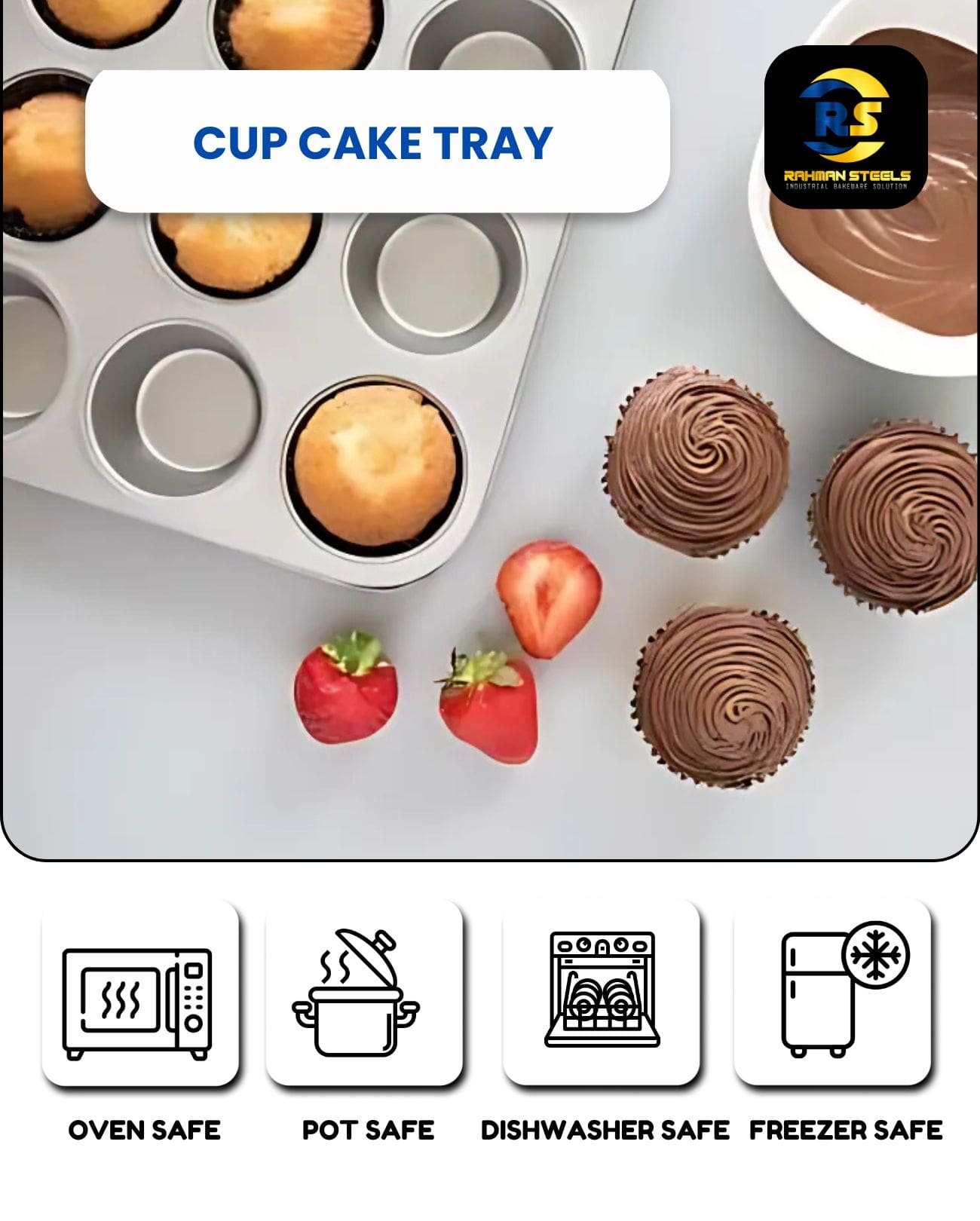Ideal for baking cupcakes, muffins, mini cheesecakes, and more, this aluminum cupcake tray is a must-have for every baker! 🍰🔥