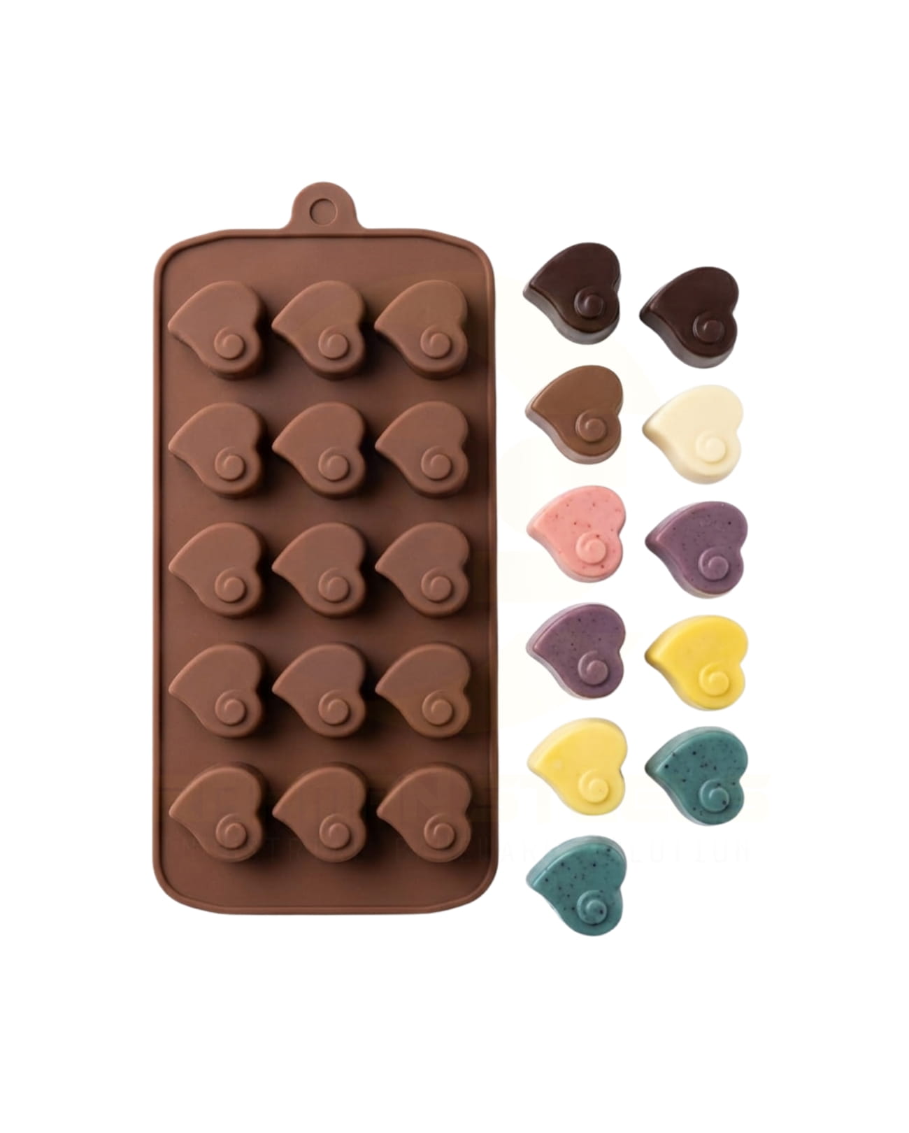 Chocolate Silicone Moulds available in multiple shapes including Heart, Flower, Alphabet, Strip Bar with Heart, Kunafa, Strip Bar 8 Pcs, Double Heart, Spiral Heart, Mini Rectangle Chip, Cavity, and Numbers are perfect for creative chocolate making and baking. Made from premium food-grade silicone, these moulds are flexible, non-stick, and ensure easy release with fine detailing. Ideal for chocolates, desserts, fondant, and bakery creations in home and professional kitchens.