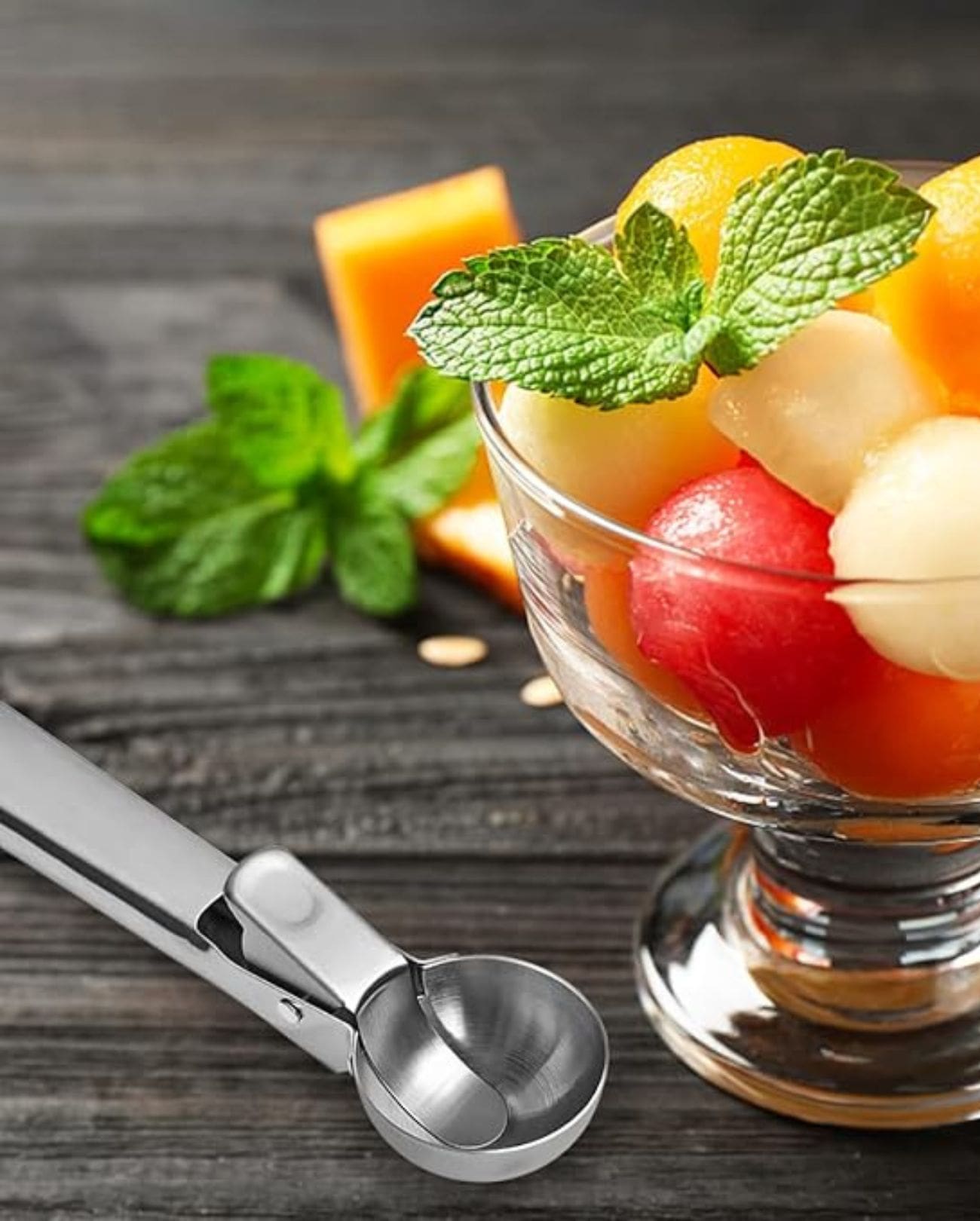 Make serving your favorite frozen treats easier with our Stainless Steel Ice Cream Scoop. Crafted from premium-quality stainless steel, this scoop is strong, durable, and rust-resistant, ensuring long-lasting use in both home and commercial kitchens. The ergonomic handle provides a comfortable grip and smooth scooping experience, even with hard ice cream. Perfect for ice creams, cookie dough, mashed potatoes, and melon balls this versatile scoop is a must-have tool for every baker and dessert lover.