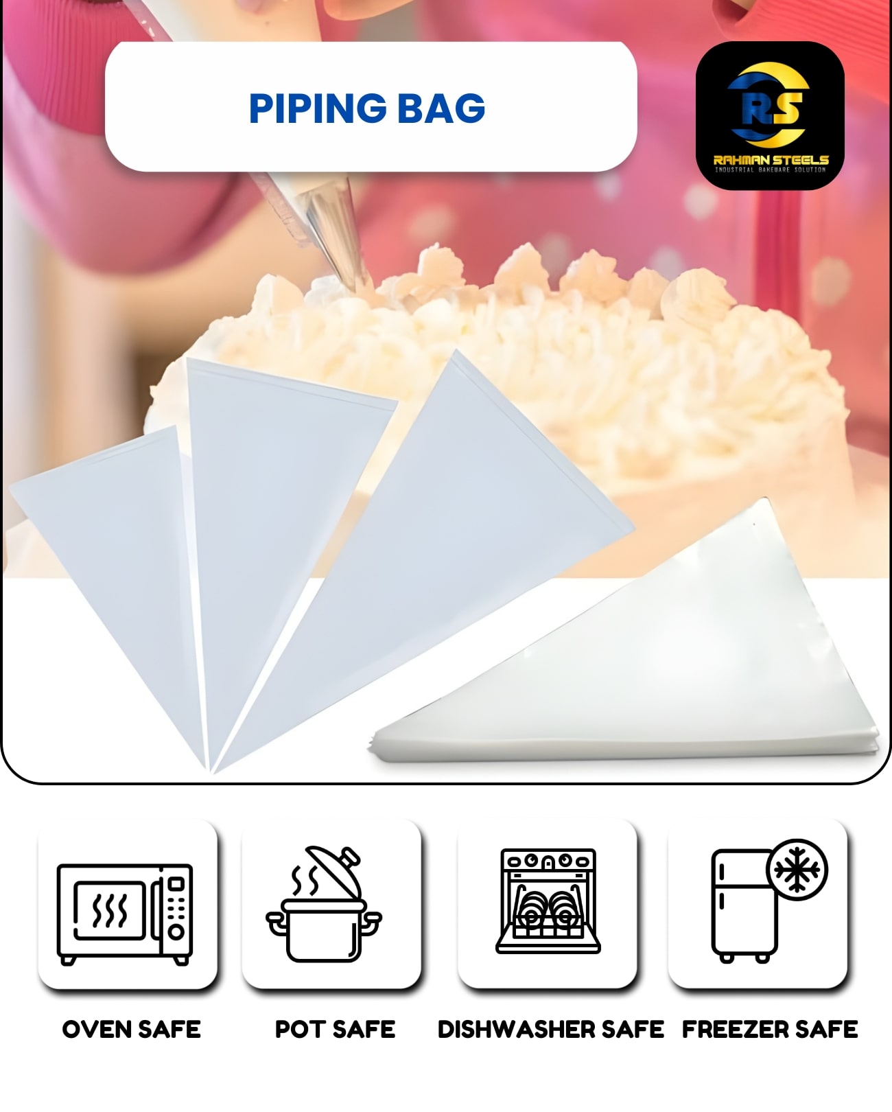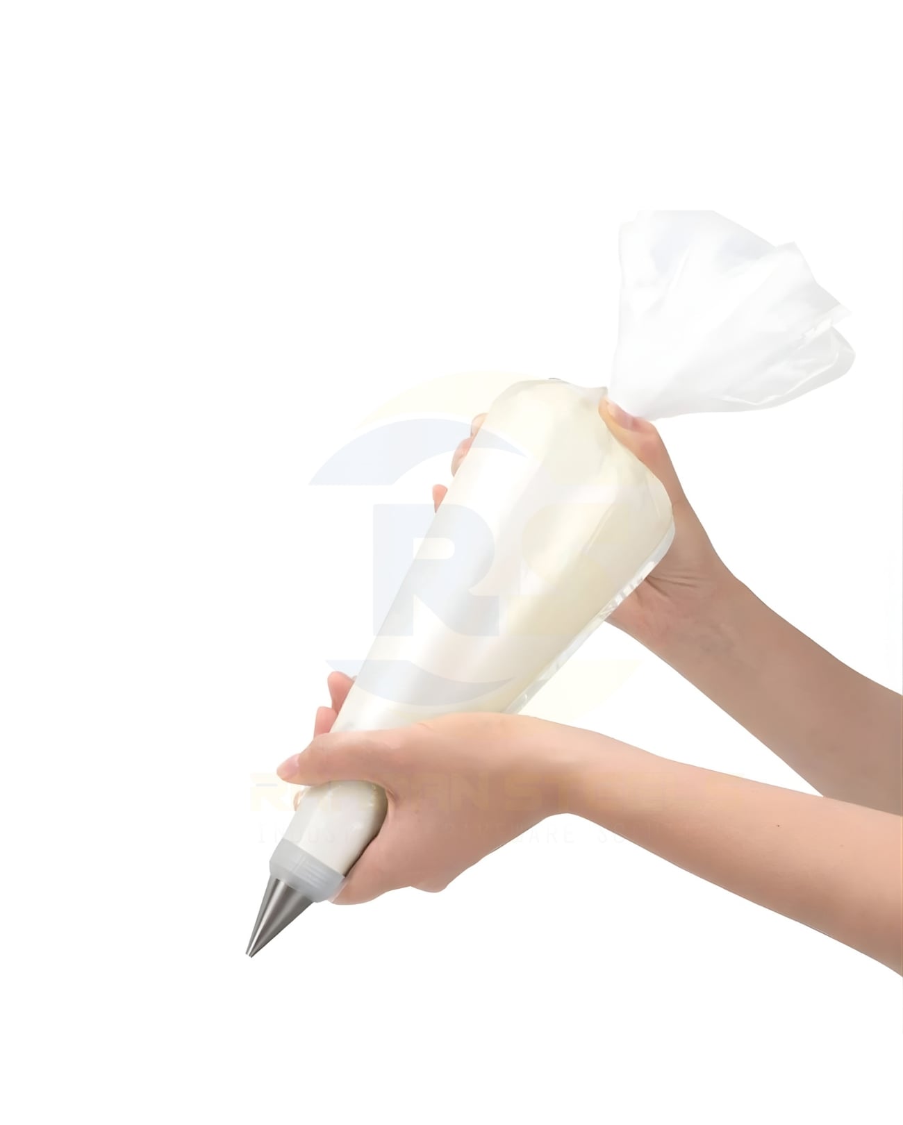 The flexible yet strong construction provides excellent grip and control, making it easy to create borders, rosettes, flowers, cupcakes, and detailed designs. Compatible with all standard piping nozzles, this icing bag is suitable for both beginners and professional bakers. Easy to clean and reusable, it is a must-have baking tool for home kitchens, bakeries, and pastry shops.